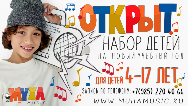 Муха Music – это уникальная студия творческого развития, которая объединила в себе главные направления, способные выявить и развить в детях таланты. Арт-студию МУХА Music открыл один из основателей московской школы-студии "Республика КИДС"- Шашкин Денис, ученики которой участвуют в самых рейтинговых телепроектах (таких, как «Голос.Дети», «Синяя птица», «Лучше всех!»), побеждают на крупных вокальных конкурсах и фестивалях, снимаются в фильмах, сериалах, ведут собственные радиопередачи.